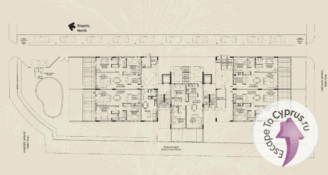 Квартира 001: жил.пл. 86, открытая веранда 28.50, участок 28,50, общ.пл. 131, стоимость 330000 евро
