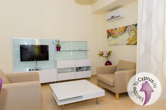 В гостиной - два дивана и кресла, журнальный столик, большой телевизор со спутниковыми каналами (в том числе русскими), DVD, есть Wi-Fi интернет.