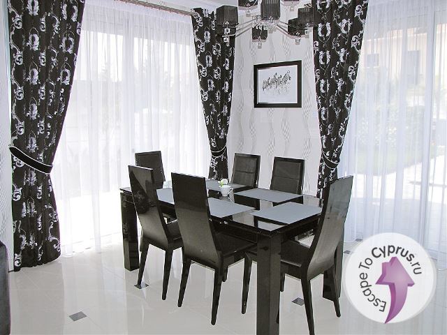 Вилла оборудована со вкусом качественной мебелью и техникой, установлены полы с подогревом, система спутникового ТВ, сигнализация, система кондиционирования. На кухне находится большая духовая печь, холодильник и вся необходимая бытовая техника.
